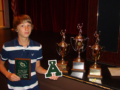 Caleb's high school tennis team made it to the state A championships. We travelled down to watch them play, but sadly, they got knocked out in the semi-finals. They returned just in time for the Sports Award Ceremony where Caleb received his letter and an award for Most Promising Newcomer to the tennis team.